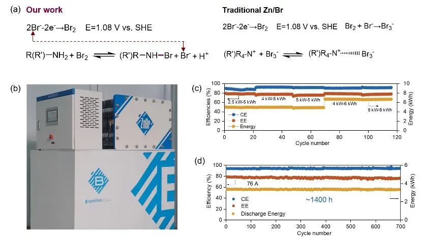 中国科学院大连化学物理研究所储能技术研究部(DNL17)李先锋研究员团队,在溴基液流电池领域取得关键进展,提出并验证了一种全新的溴基双电子转移反应体系,成功解决长期困扰溴基液流电池的腐蚀与寿命问题,并完成锌溴液流电池的系统级放大验证。