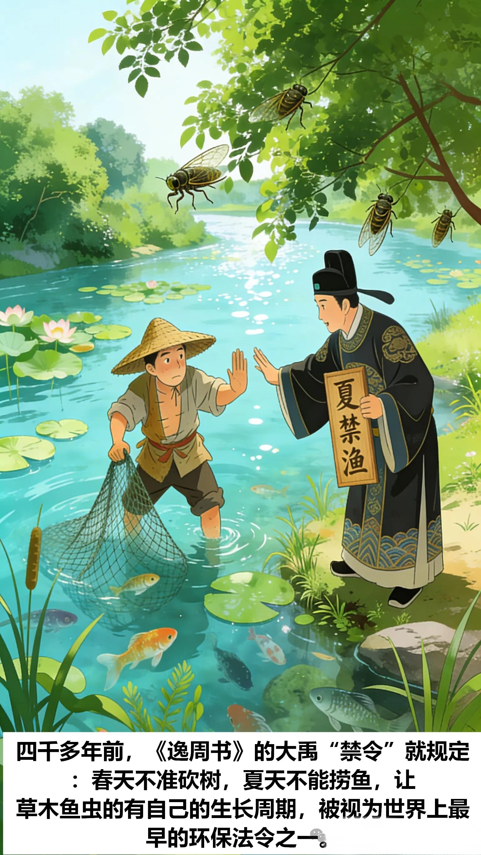 早在四千多年前,咱们的老祖宗在《逸周书》的大禹“禁令”就规定:春天不准砍树,夏天不能捞鱼,让草木鱼虫的有自己的生长周期,被视为世界上最早的环保法令之一。