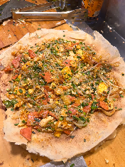 主打正宗山东菜煎饼,源自鲁南风味,选用杂粮面糊,摊成薄而有韧性的煎饼,加入鸡蛋、火腿、土豆丝、海带丝、香菜等多种配料,卷起来后煎至金黄酥脆,外皮焦香,内里软糯,食材丰富,口感层次饱满,咸香可口,是山东人日常的小吃选择,做法简单却充满烟火气。