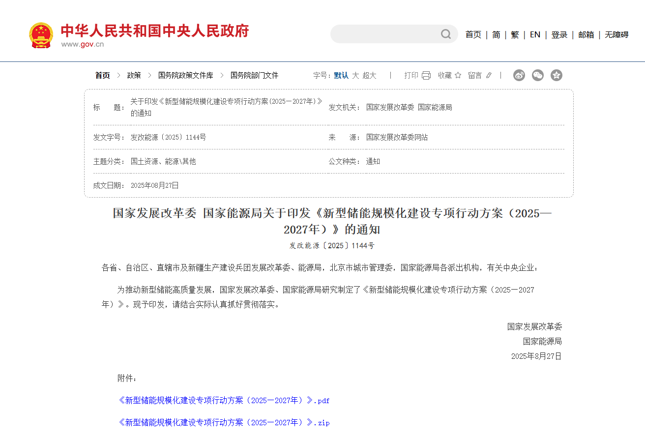 《新型储能规模化建设专项行动方案》明确提出,到 2027 年全国新型储能装机规模需达1.8 亿千瓦以上,带动直接投资约 2500 亿元 —— 对比 2024 年底 7376 万千瓦的装机量,意味着未来三年将新增超 1 亿千瓦装机,年均新增量是 “十四五” 前四年均值的 2 倍以上。