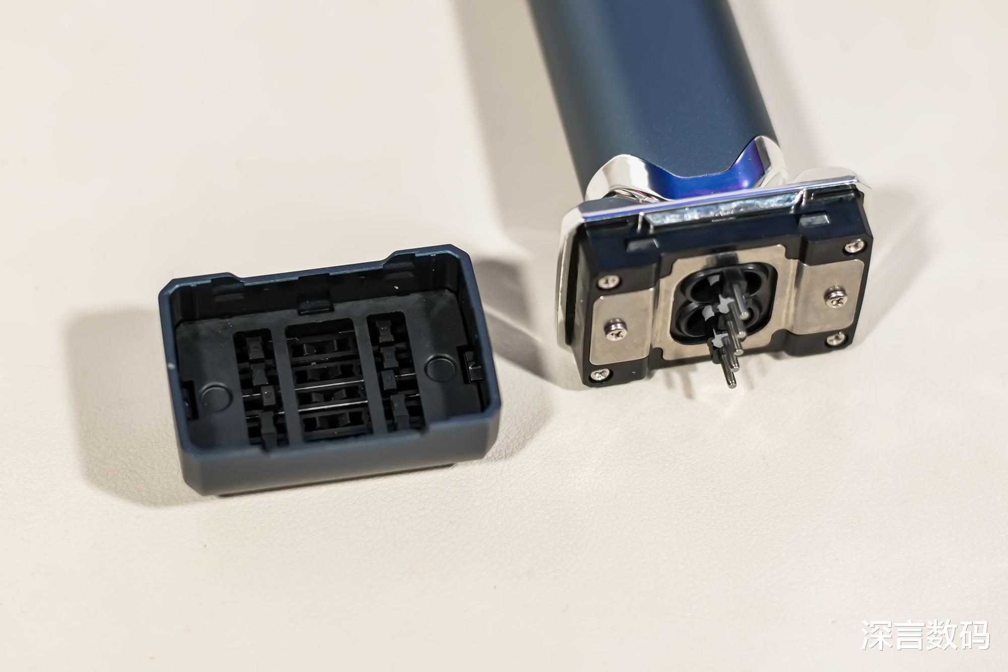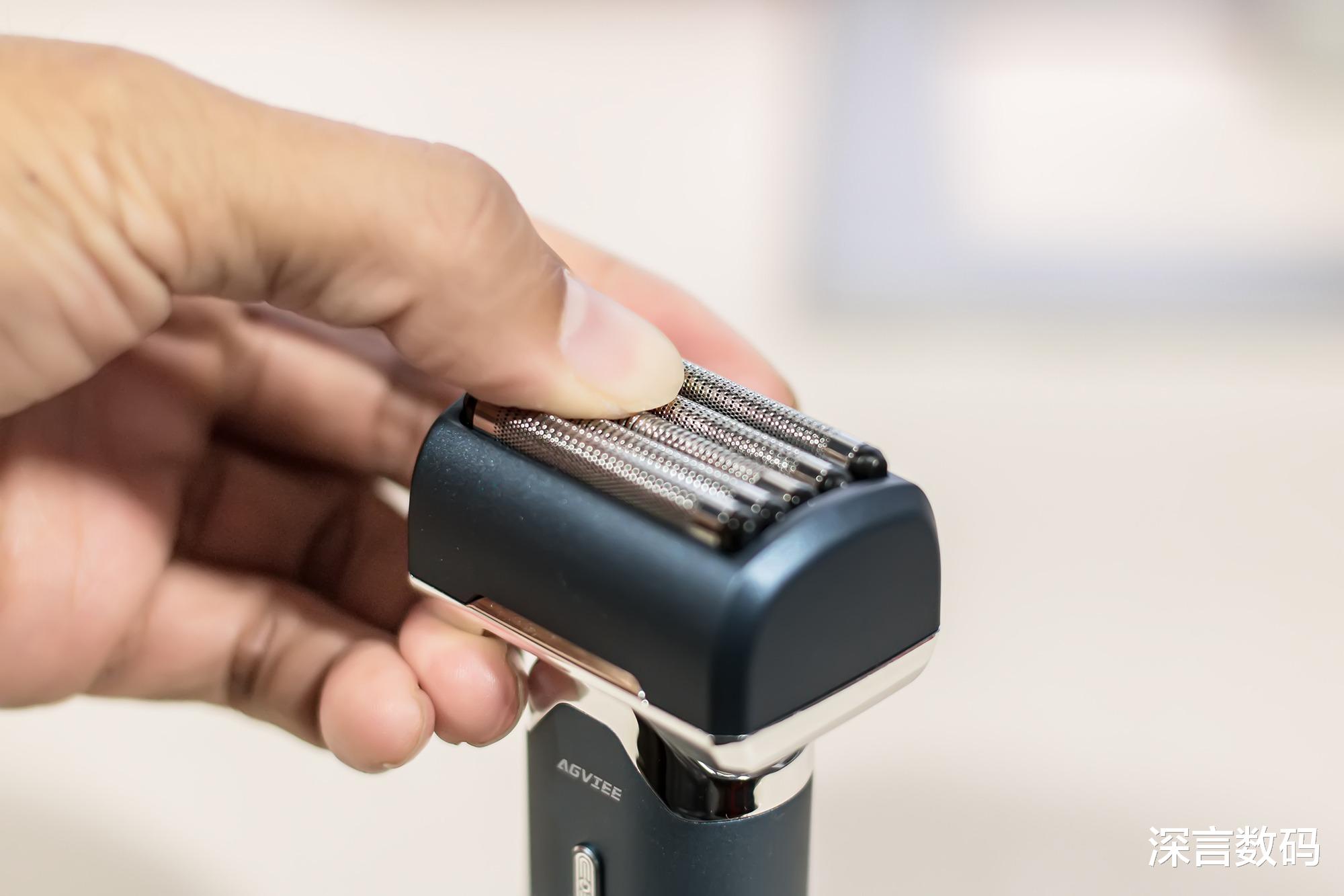 当完成多次剃须后需要进行及时清理内部毛发,稍微用力往上推刀网两侧的凹槽,便可取下来毛发仓,可搭配使用毛刷等配件,剃须刀支持防水功能,可以直接将其放水龙头下进行冲洗刀头和刀网,然后用布擦掉外表面的水液,这样清洗更方便不用费时清扫。