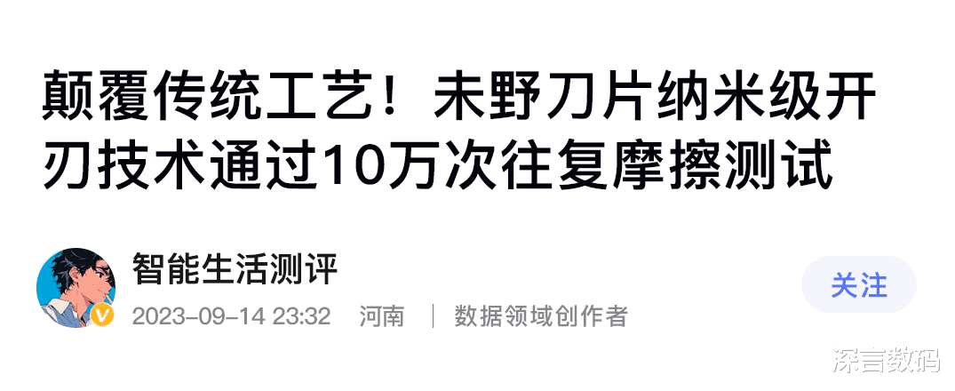 专业机构检测发现未野剃须刀5000次磨损刀片衰减度小于1%: