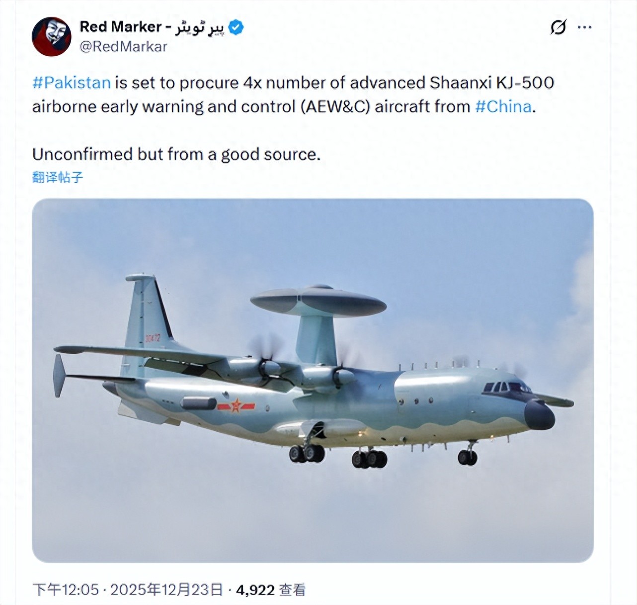 最近,一则关于巴基斯坦空军的新消息在网上悄然引发关注:他们可能要采购4架中国的空警-500预警机。这并非一般的采购,而是一次策略方向的明确转变。一旦落地,将意味着巴空军全面加速“中械化”,背后传递出的信息,比表面上的交易要深远得多。