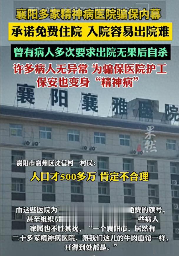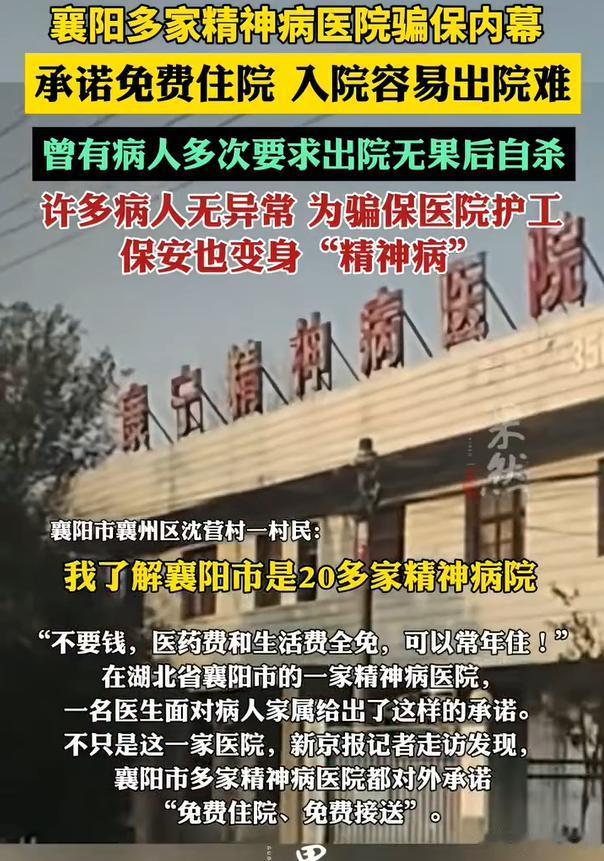 “吃住全免、免费接送,住院不用花一分钱”,这样看似诱人的承诺,却成为襄阳多家民营精神病医院系统性套取医保基金的罪恶诱饵。这些本该守护精神障碍患者健康的医疗场所,早已沦为漠视生命、践踏规则的“骗保工厂”,通过伪造诊断、虚构诊疗、循环假出院等一系列精心设计的套路,形成完整黑色产业链,将医保基金当作“提款机”,其行径之猖獗、手段之卑劣,堪称触目惊心,如今这起轰动全国的骗保黑幕已引发官方彻查,相关违法违规行为正被逐一揭开。
