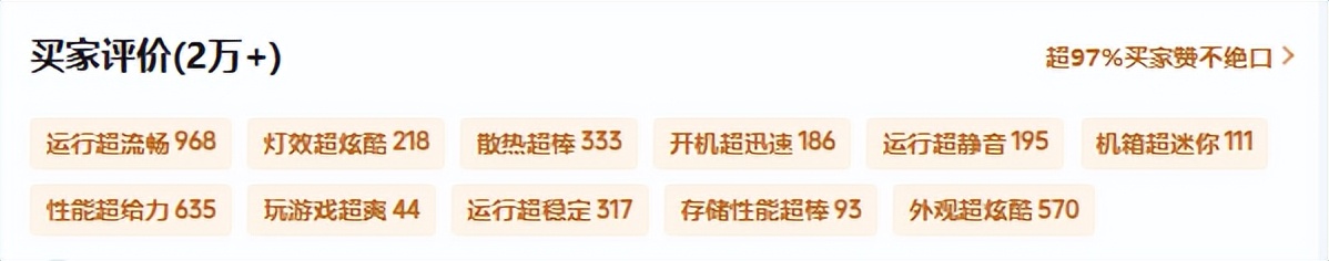 就在DIY市场一片哀嚎时,一线大牌整机却凭借政府补贴的“神助攻”逆势走红,其中搭载英特尔酷睿Ultra 5处理器225F的华硕天选6X整机凭借不到7K就能拿下,还是32+1TB的规格,成为装机圈的新宠。京东平台数据显示,这款机型2万+的评价中,好评率达到了97%。并且累计评价中,“性价比之王”“售后省心”成为高频关键词。