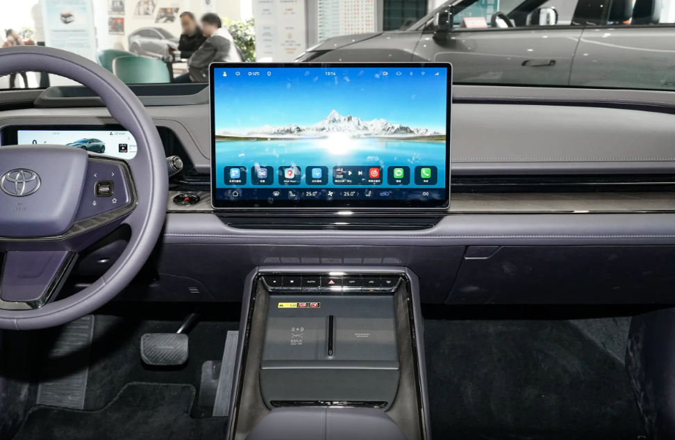 悬浮中控屏内置鸿蒙最新车机系统,不论是UI界面设计还是科技功能都是大家熟悉的那一套,基本没什么可以挑剔的地方,从这一点也能看出丰田为讨好消费者做出了不少努力,考虑到实用性,车内继续保留了一排实体物理按键,兼顾美观性和实用性,换挡系统采用怀挡设计后为前排节省了更多空间,该有的储物空间也不少。甚至就连冰箱也配备了,虽说该配置应该是顶配专属,不过能配备就很不错了。
