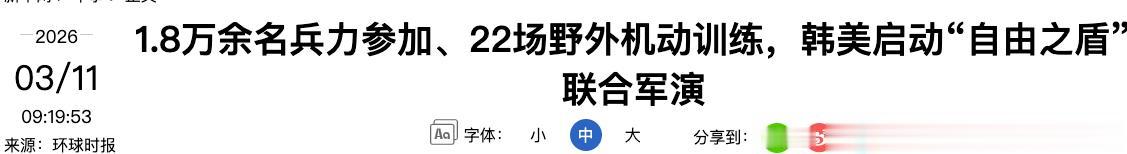 要知道,韩美自由之盾联合军演3月9日刚开始,朝鲜管那叫“侵朝演习”,这笔账记着呢。