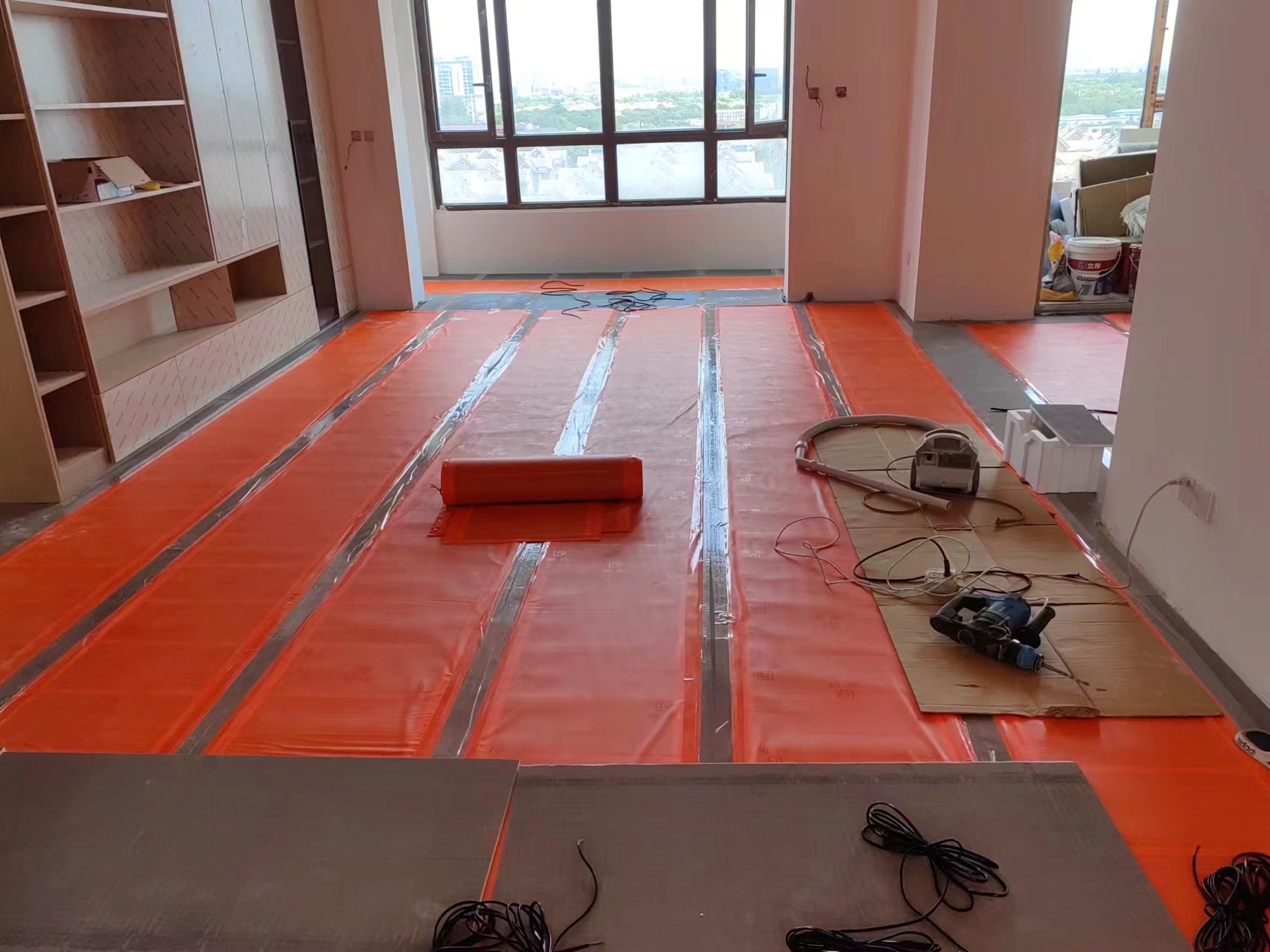 2026年2月初,地暖和木地板同步施工,仅用1天完成全部铺设。暖匠地暖系统超薄(仅2mm),无需回填,不抬高地面,完美适配陈总选定的实木复合地板。