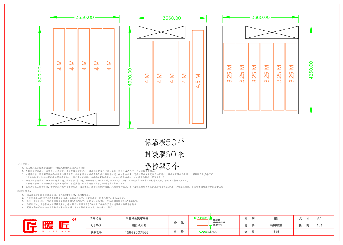 更重要的是,我们向陈总展示了真实的工程图纸与施工细节——包括他家三间房的户型图、发热膜排布方案、温控器点位设计等。每一处弯角、每一米走线,我们都提前模拟优化,确保木地板下无重叠、无空铺,发热均匀又安全。