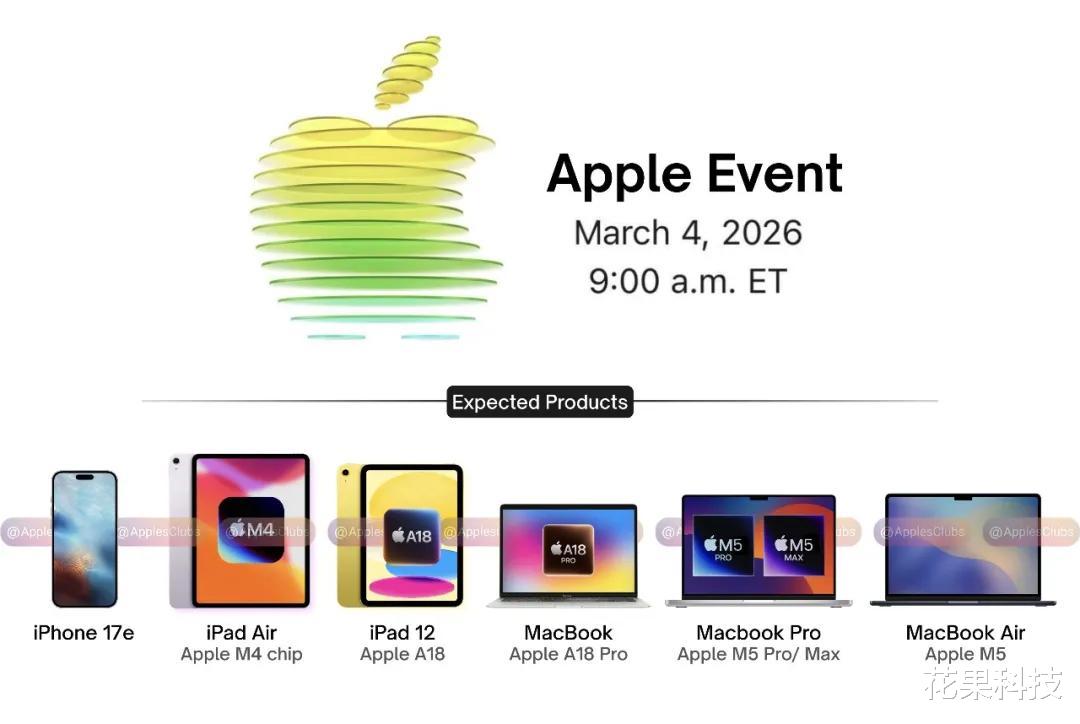 根据 Mark Gurman 的最新报道,苹果公司计划从 3 月 2 日-4 日进行为期三天的产品公告,预计总共会推出至少五款新产品,有可能推出的新品包括: