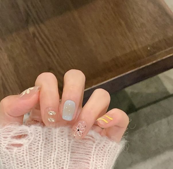 纹理方面,可以适当融入一些理性的几何线条。比如在裸色的基底上,用深棕色或灰蓝色画一道垂直的竖线,或是简单的十字交叉。这种设计感来自于现代建筑的极简美学,能让短甲显得更修长、利落。它没有年龄感,无论是学生还是职场人,都能轻松驾驭,既不会幼稚,也不会显得老气横秋。