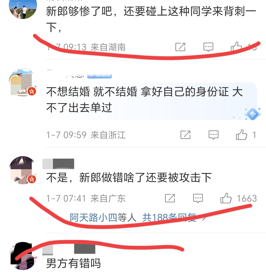 没必要攻击新郎吧?新郎也挺倒霉的。