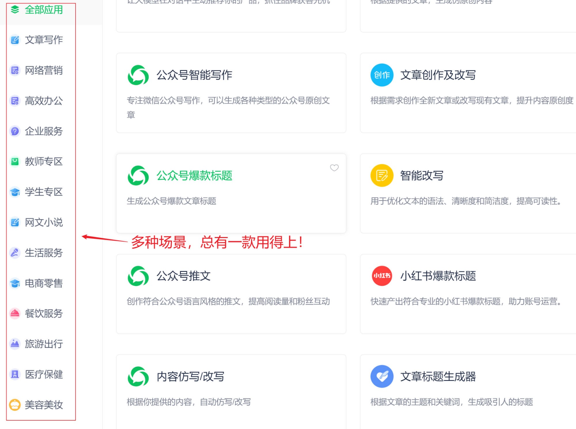 360+智能体覆盖了几乎所有内容创作场景,从公众号推文、小红书笔记到知乎问答、产品测评,甚至包括公文写作和FAQs生成。特别值得一提的是其爆款标题生成功能,2分钟即可产出20个备选标题,并标注了各平台适配度评分,大大降低了选题决策难度。