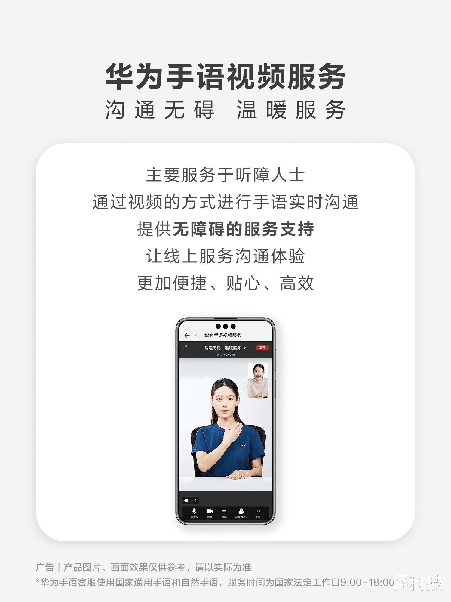 为了给听障人士带来高效且专业的服务支持,手语客服团队除了通过华为终端能力人员产品认证,对华为终端“1+8”产品有全面了解外,还需要具备超3年业界手语服务经验以及特殊教育相关专业教育背景。华为手语视频服务,打造了行业标杆,且体现了我国科技品牌的温度和责任。