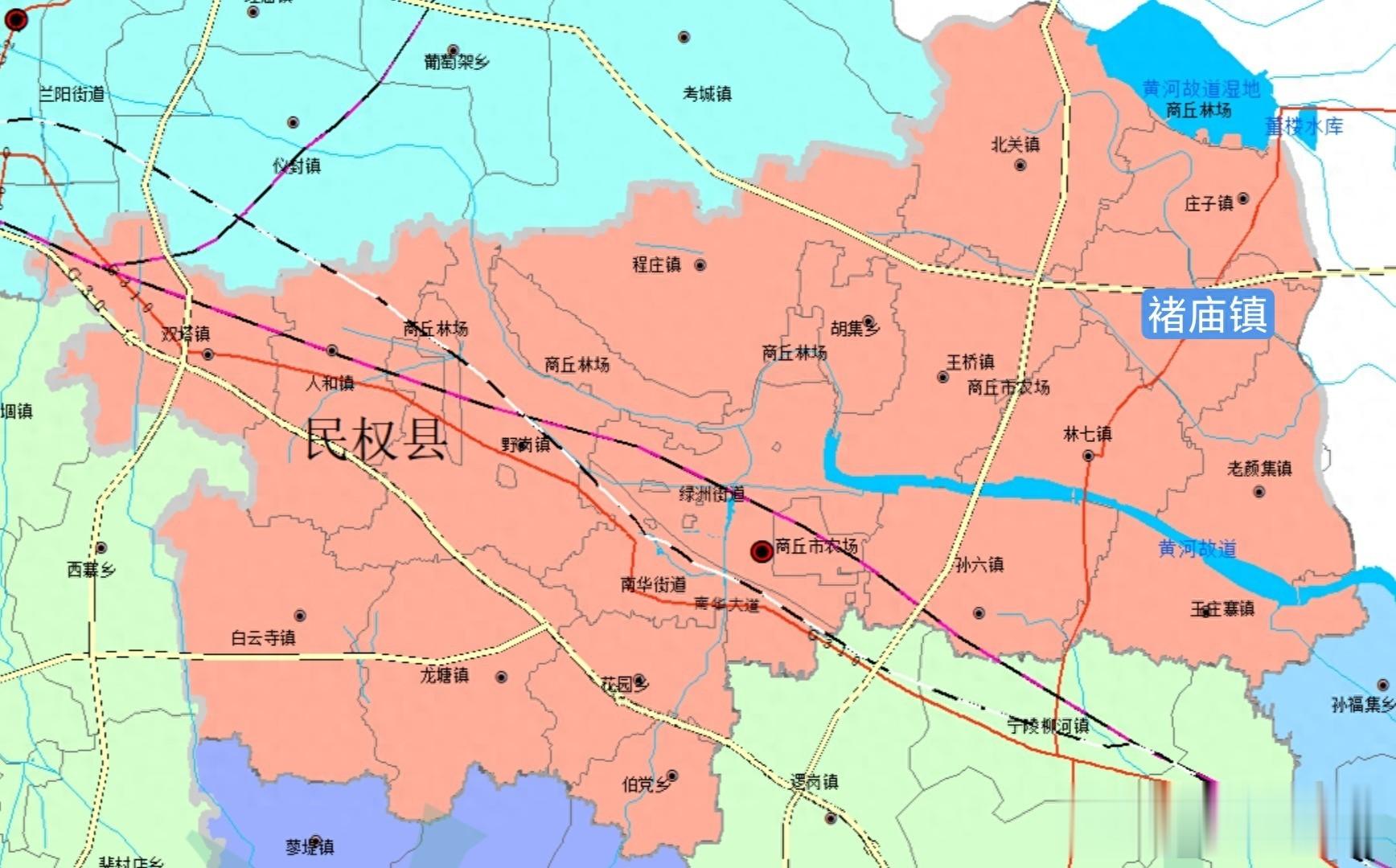 褚庙镇撤乡设镇后,民权县有两个城市街道,14个镇,3个乡,其地图如下: