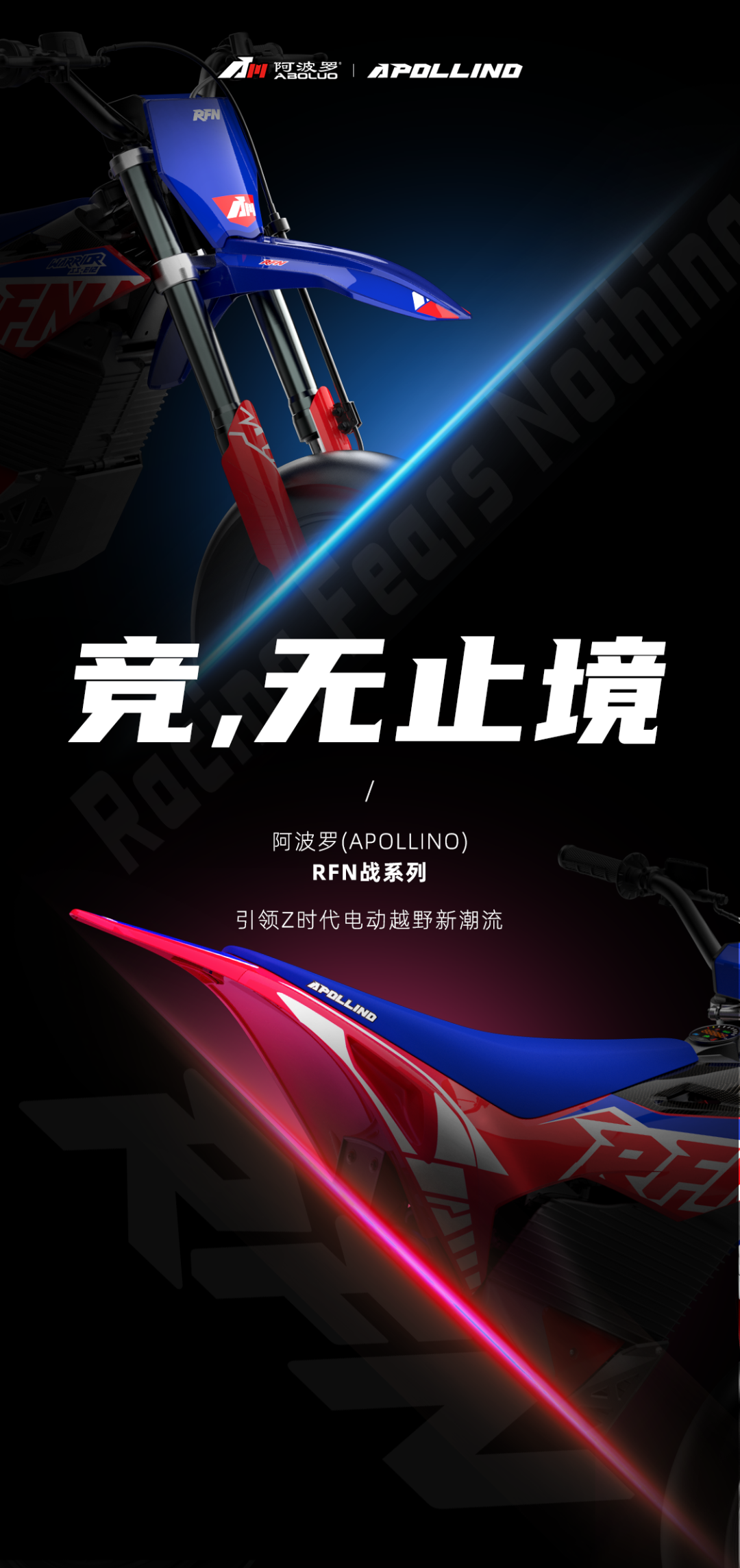 阿波罗(APOLLINO)致力于打造高颜值、极致操控性、轻量化的产品特征,赋予精神层级的灵魂体验。他们吸收融合了几十年越野骑行经验和专业越野摩托制造生产经验,创造了更轻盈和更强大的全地形电动越野摩托车-RFN战系列。