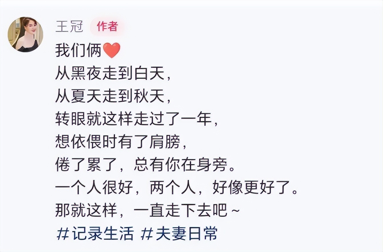 婚后的王冠选择了逐渐淡出荧屏,把更多时间和精力放在家庭生活上。