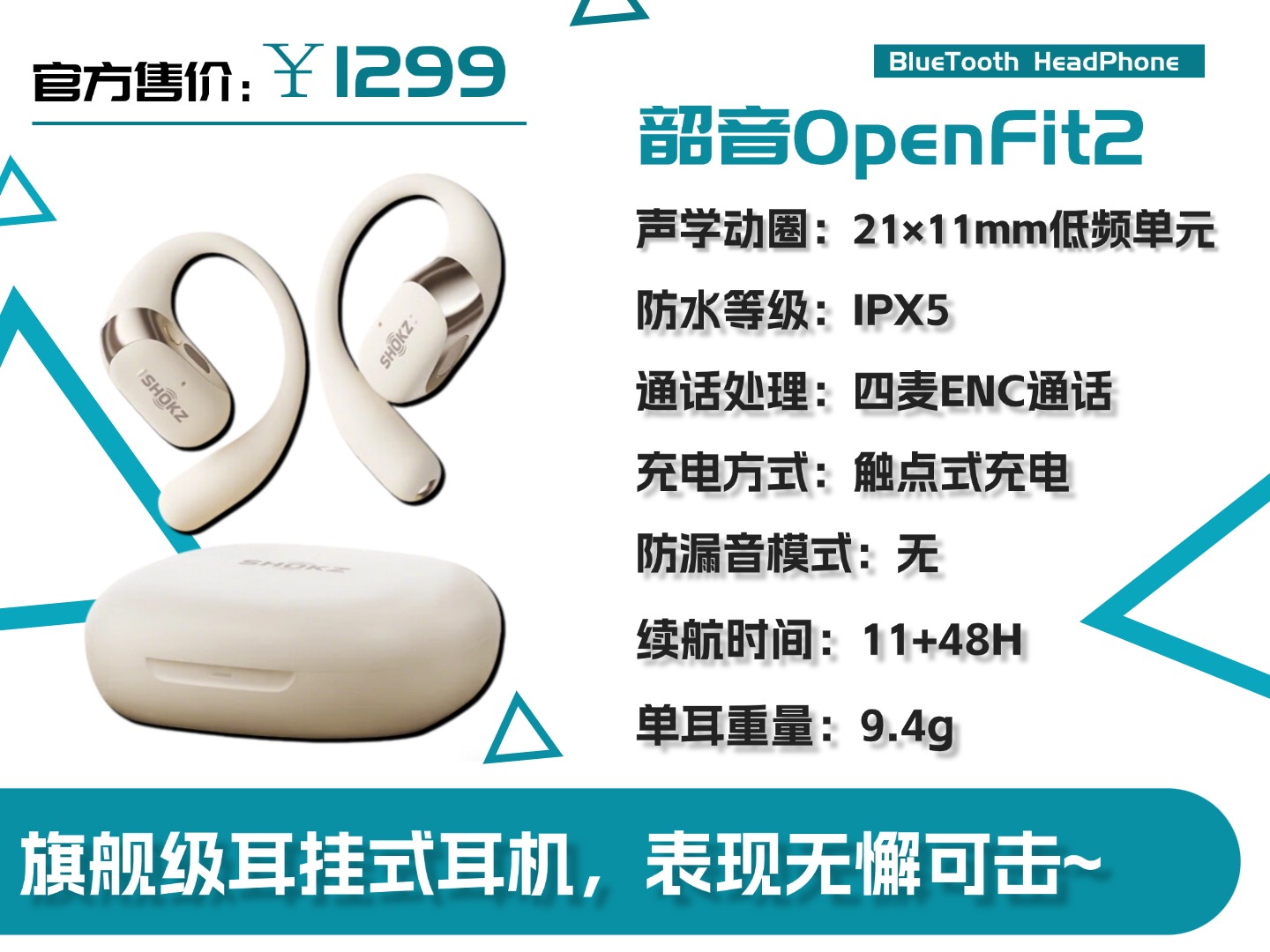 推荐理由:三百多元的价位能做到体验无短板,称得上是开放式耳机里的性价比之王,闭眼入基本不踩雷