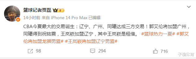 郭艾伦被交易到广州龙狮的社会反应比周琦转会还要大,辽宁球迷表达了对郭艾伦的不舍之情,但也明白俱乐部为季后赛场均出战43分钟以上的赵继伟找个合适替补也是燃眉之急,不少球迷甚至歉意的表示,都没来得及好好欢迎王岚嵚的到来。不过受迫于经营压力,郭艾伦难留龙狮,在转会截止日前或赛季中期会被接着转卖给CBA联盟里的争冠球队。