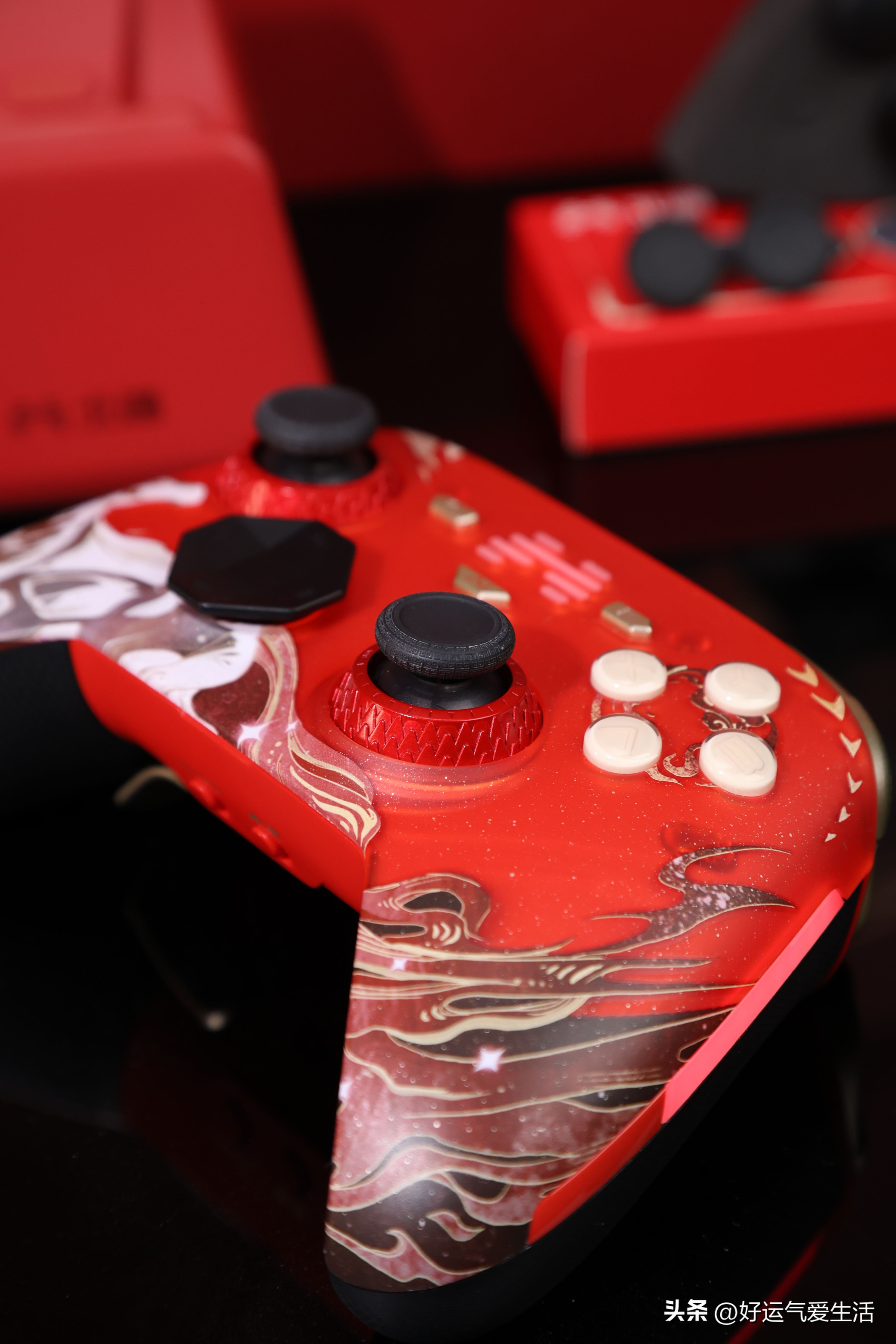 特别戳我的是,手柄的新春面壳有祥云、星芒灯元素做点缀,有种“马力全开 鸿运飞驰”的好彩头,就这个颜值放在桌面上当摆件也十分应景。