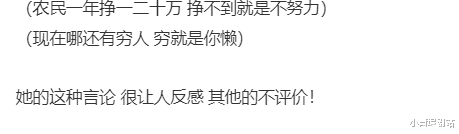 在闫学晶看来,农民只要踏踏实实种地,努力赚钱,就能够一年十几二十万的赚钱,赚得不够多,就是不够努力。明明,也是从正儿八经的农村大妞,一路走来的,却忘了种地的艰难。