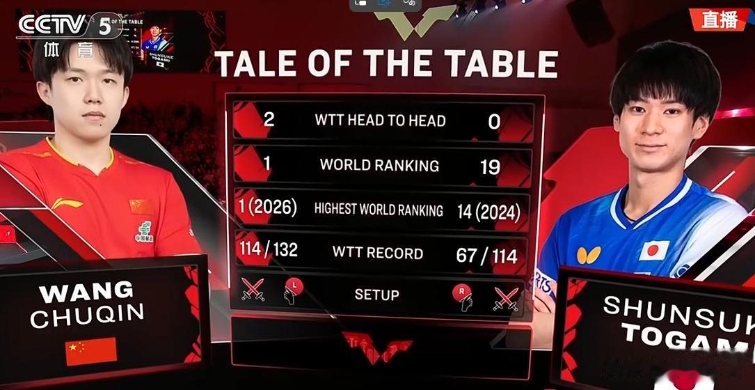 王楚钦本届新加坡大满贯首轮比赛以3:0击败澳大利亚选手卢伟,而户上隼辅在第一轮比赛中以3:1战胜韩国选手赵大成。王楚钦现在高居世界排名第一位,而户上隼辅目前世界排名第19位。王楚钦此前与户上隼辅有过七次交手记录,王楚钦取得了全胜并且未丢一局,占据绝对的优势。