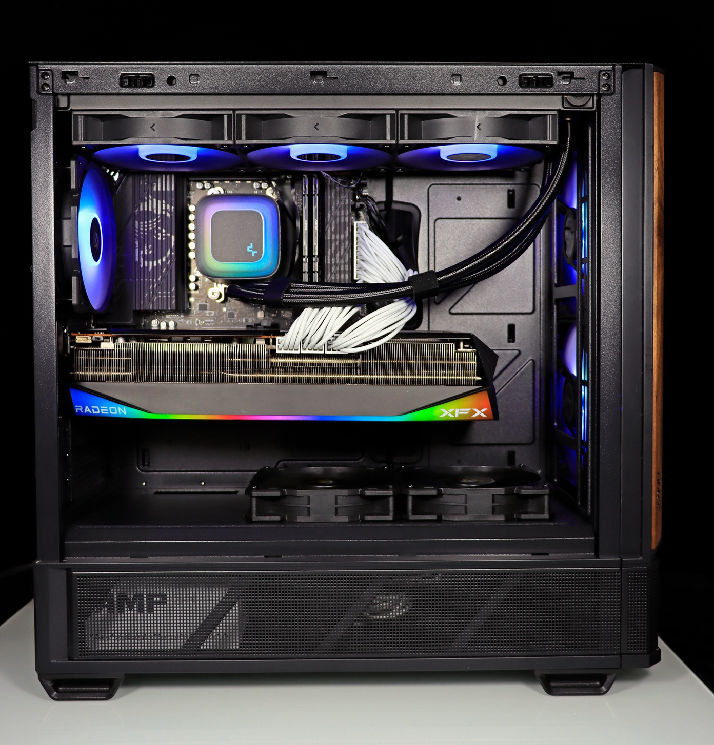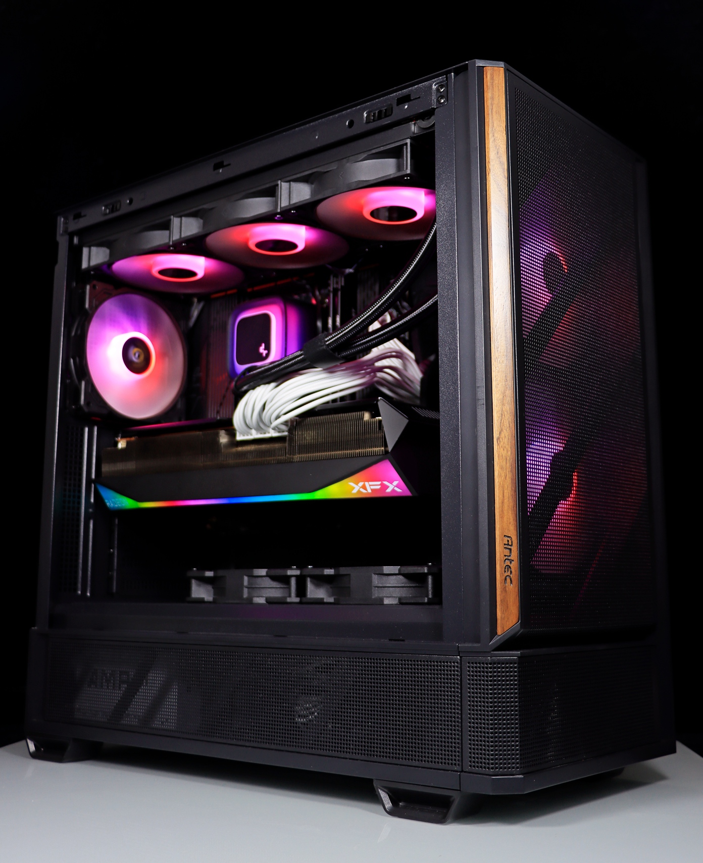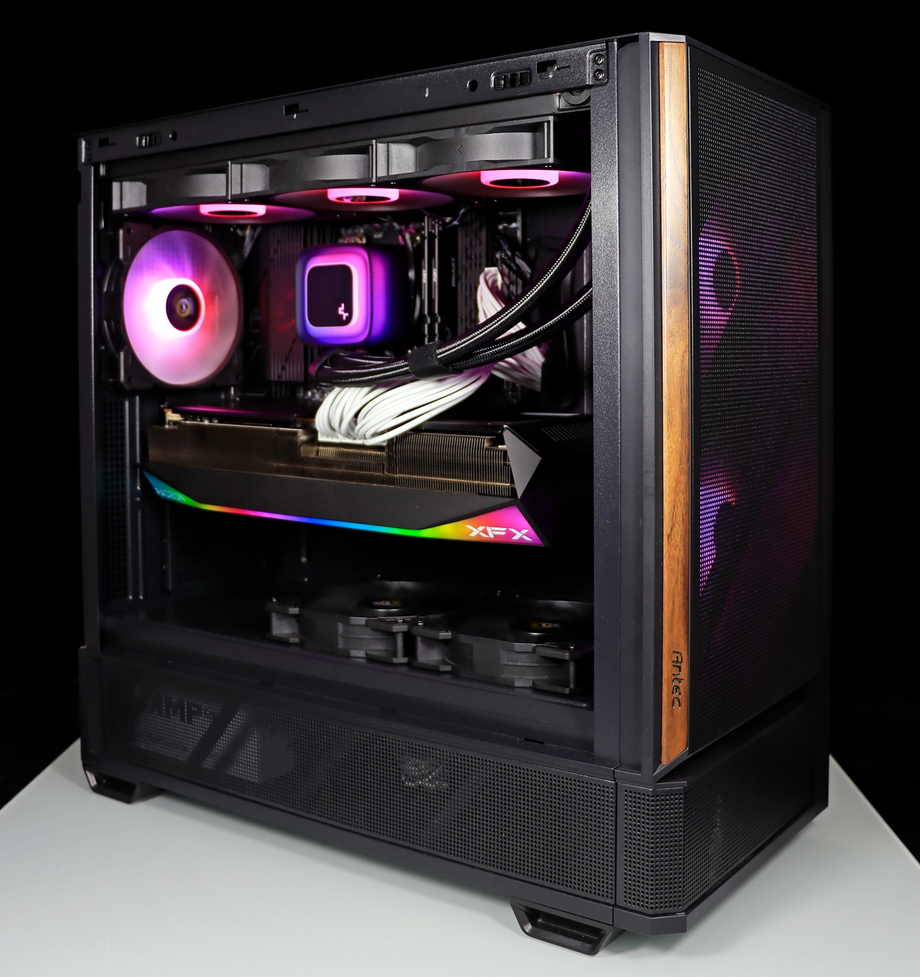 ▲ 机箱采用安钛克全新推出的 P30 ARGB 机箱。这款机箱采用全新的原木·木语元素,将木质面板融入机箱之中,在冰冷的钢铁质感中多了温馨。