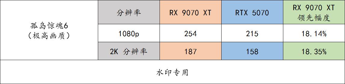 ▲ 《孤岛惊魂 6》benchmark 实测,9070 XT 在这个游戏上的领先幅度非常稳定呀。