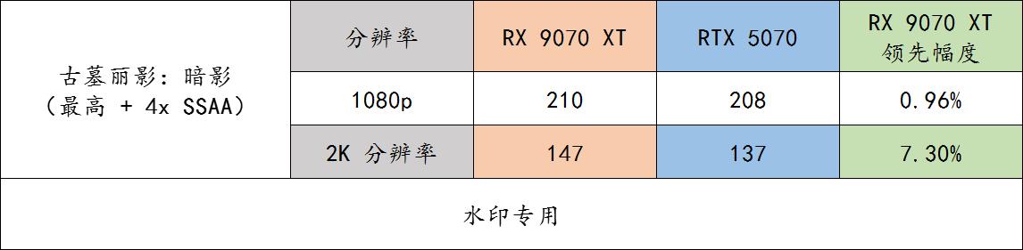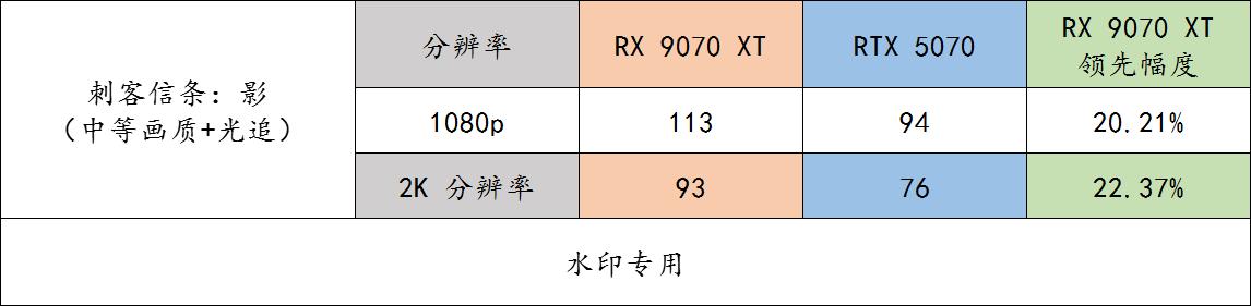 ▲ 对于比较新的《刺客信条:影》游戏 benchmark 实测,9070 XT 领先的幅度就比较稳定,而且是断层式的领先。