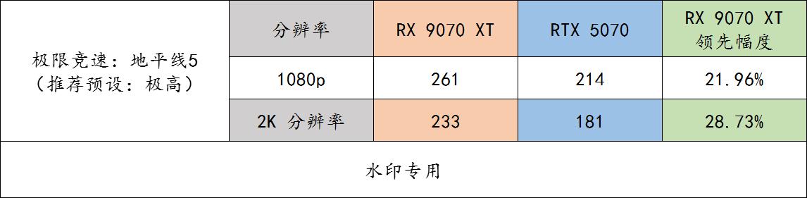▲ 《极速竞技:地平线 5》benchmark 实测,9070 XT 的优势体现得淋漓尽致。