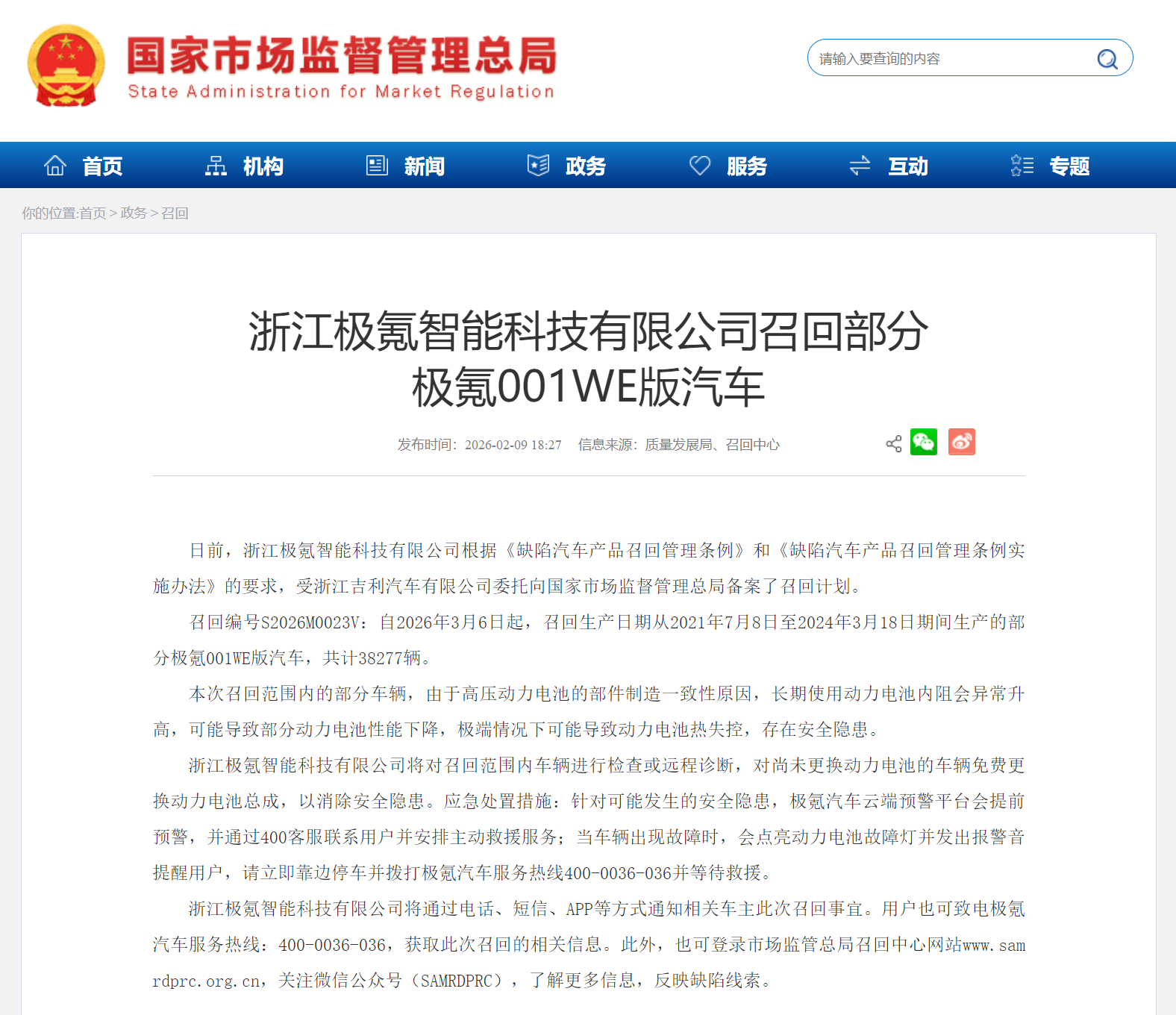 首先,来梳理一下极氪此次的召回事件:起因是极氪通过云端监测发现,发现2021年7月至2024年3月期间生产的这批极氪001 WE 86车型,所搭载的欣旺达电池电芯存在潜在安全隐患,随即主动召回。