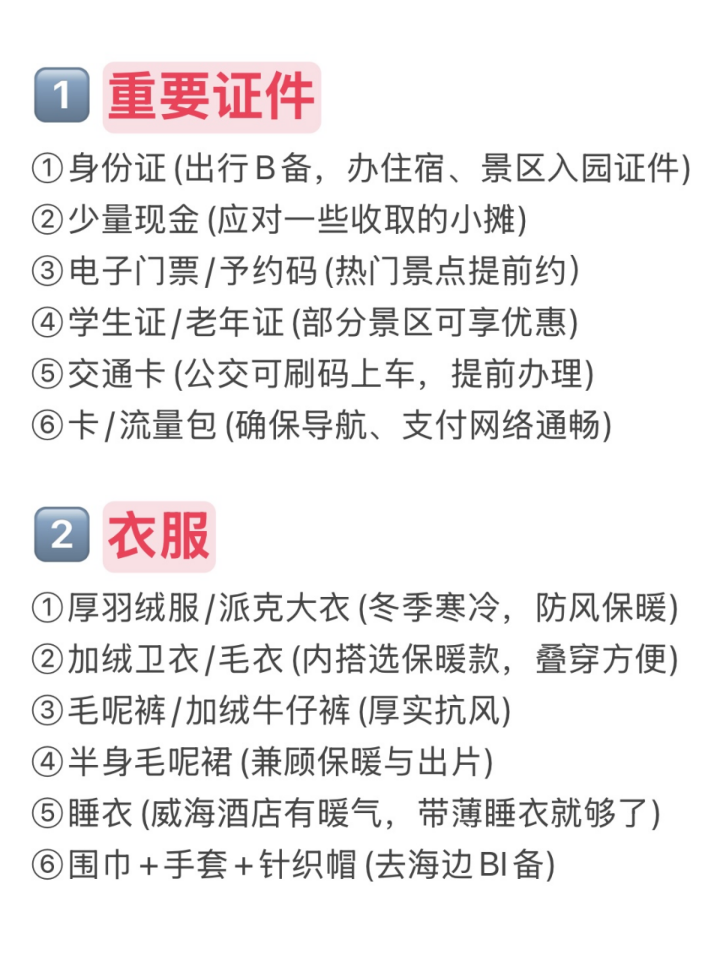 去威海,忘记带什么zui绝望,真的不知道该带什么了,总结了一些,希望去过的姐妹给些建议还需要带些什么🤔