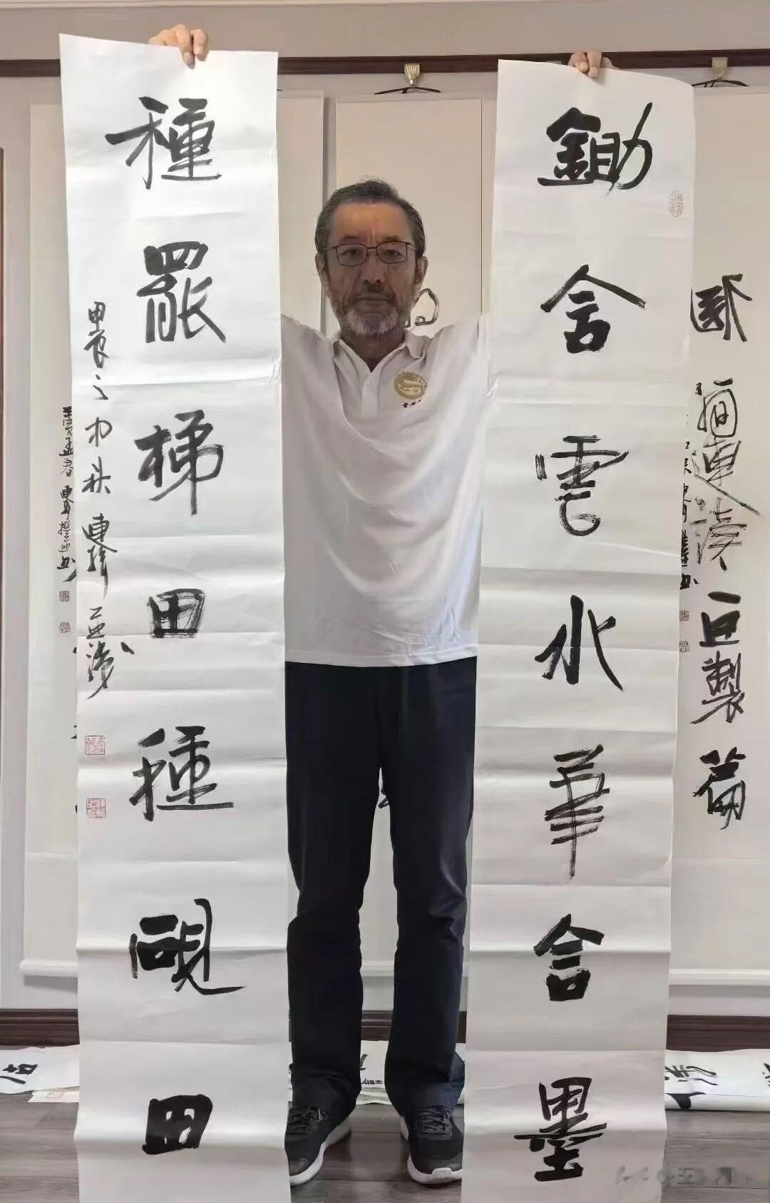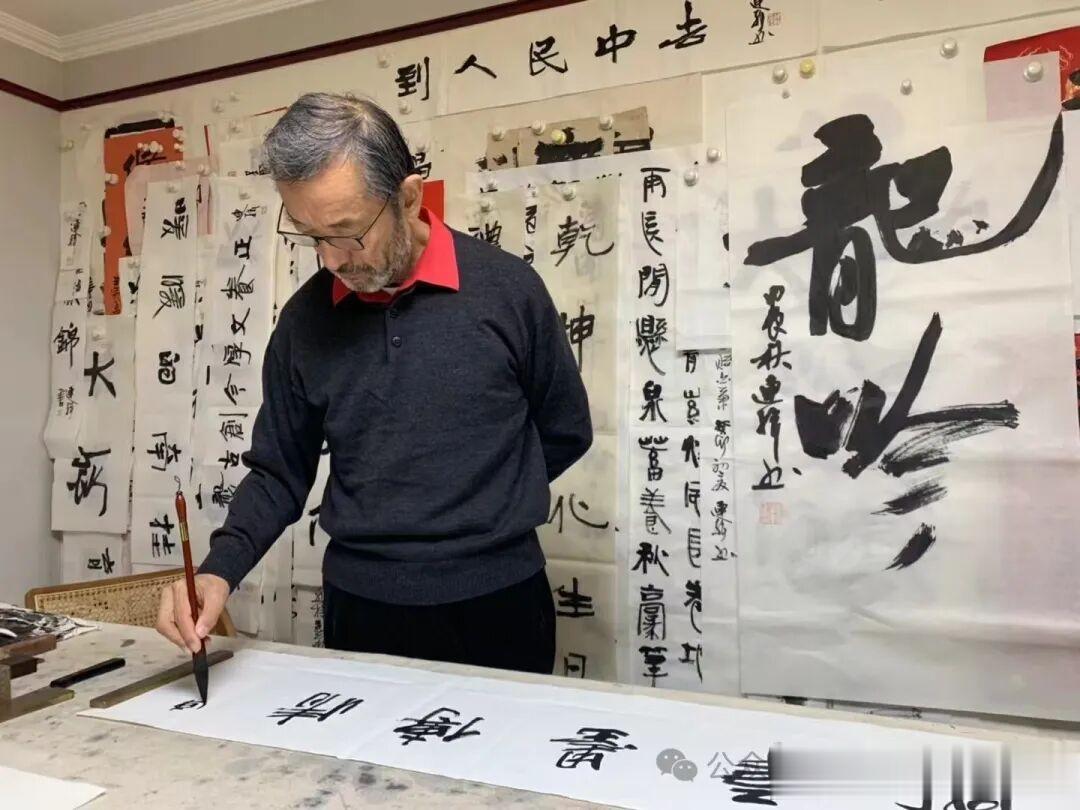 他经常在书房里练字,陶冶情操,有时也会举办跟书法有关的专题讲座,在书坛颇具影响力。他的生涯就像他的对联写的那样,上联是黄河饮马的生命豪情,下联是案上书香的文人雅志。