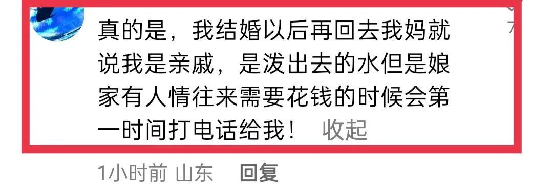 网友分享五看了这两个网友的分享,心里也是拔凉拔凉的!“嫁出去的女儿泼出去的水”
