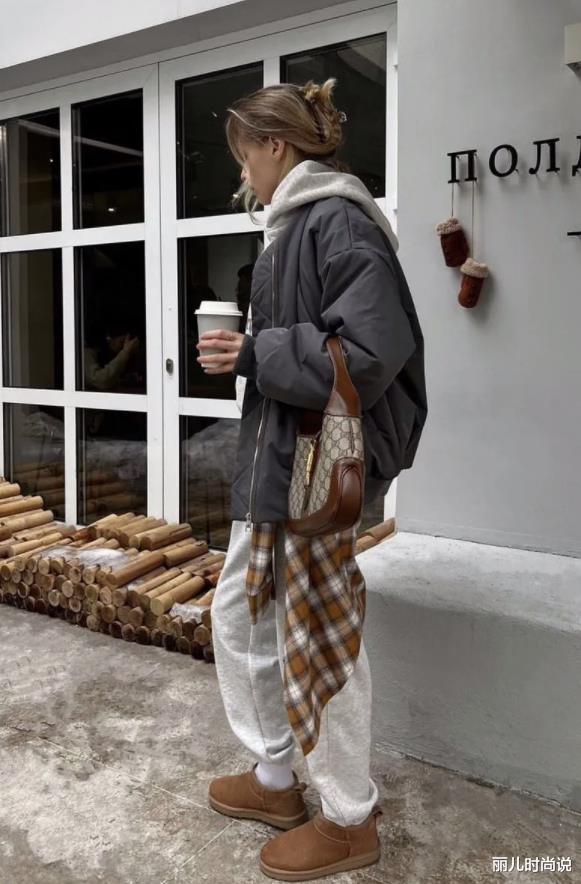 棕色的羽绒服实在是太合适冬天了,内搭选择卫衣来配,不仅实用还充满时尚感,利落的短款,对于个矮的女生来说也是非常友好的,温暖又十分柔和,非常适合寒冷的冬天穿。▼