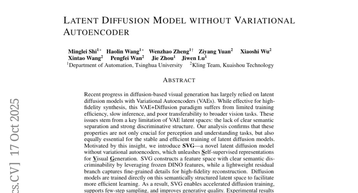 这项由清华大学自动化系施明磊、王浩霖、郑文钊团队与快手科技Kling团队联合完成的开创性研究,发表于2024年10月的arXiv预印本平台。感兴趣的读者可以通过论文编号arXiv:2510.15301v1查询完整研究内容。这项研究首次提出了一种完全不依赖变分自编码器的潜在扩散模型SVG,在图像生成领域实现了重大突破。