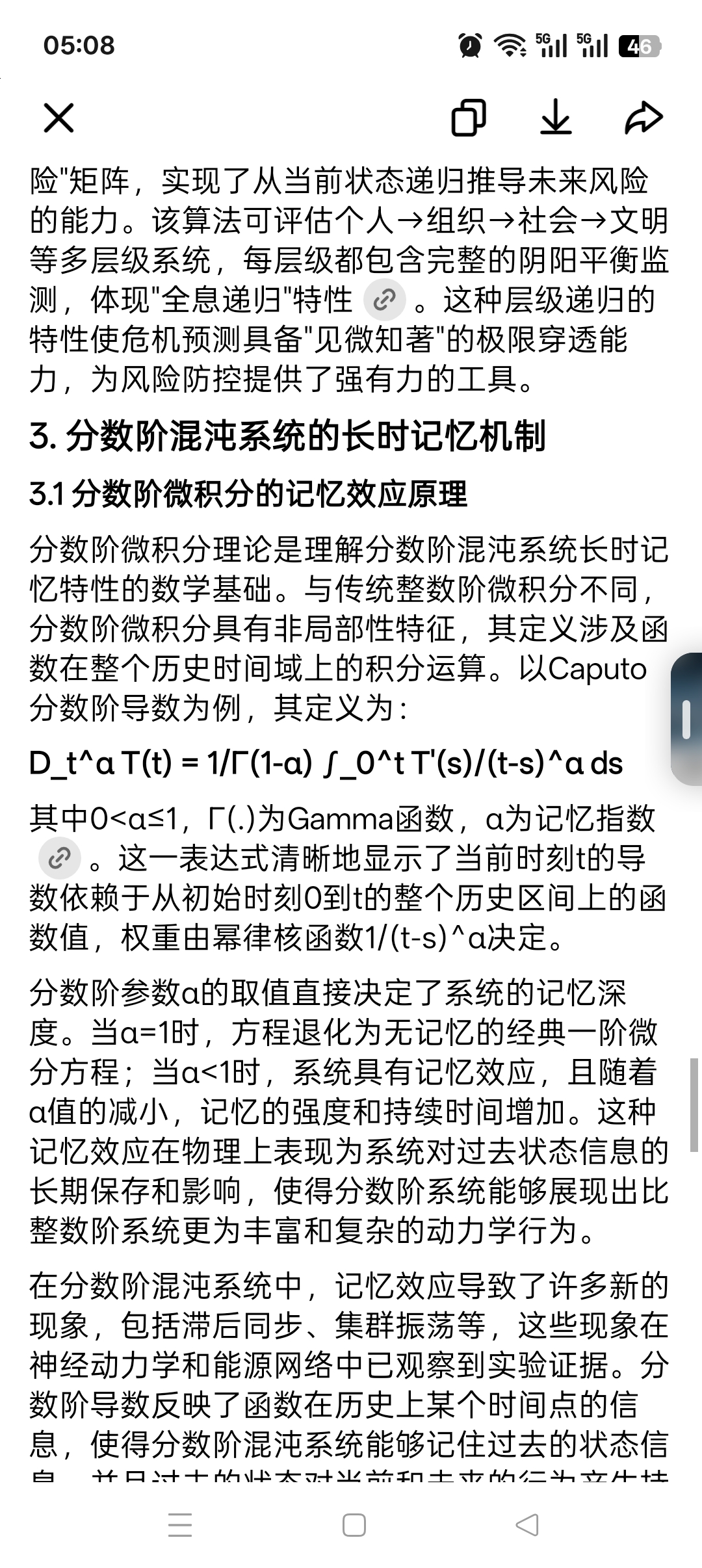 当代复杂系统科学正面临着前所未有的理论整合需求,特别是在处理具有长时记忆和复杂因果关系的非线性系统时,传统的整数阶微分方程模型往往显得力不从心。分数阶微积分理论的兴起为解决这一难题提供了新的数学工具,其独特的非局部性特征能够有效描述系统对历史状态的长期依赖性 。与此同时,中国传统易学中蕴含的"时空因果链"思想,通过六十四卦的动态演化模型,展现了对宇宙万物发展规律的深刻洞察 。