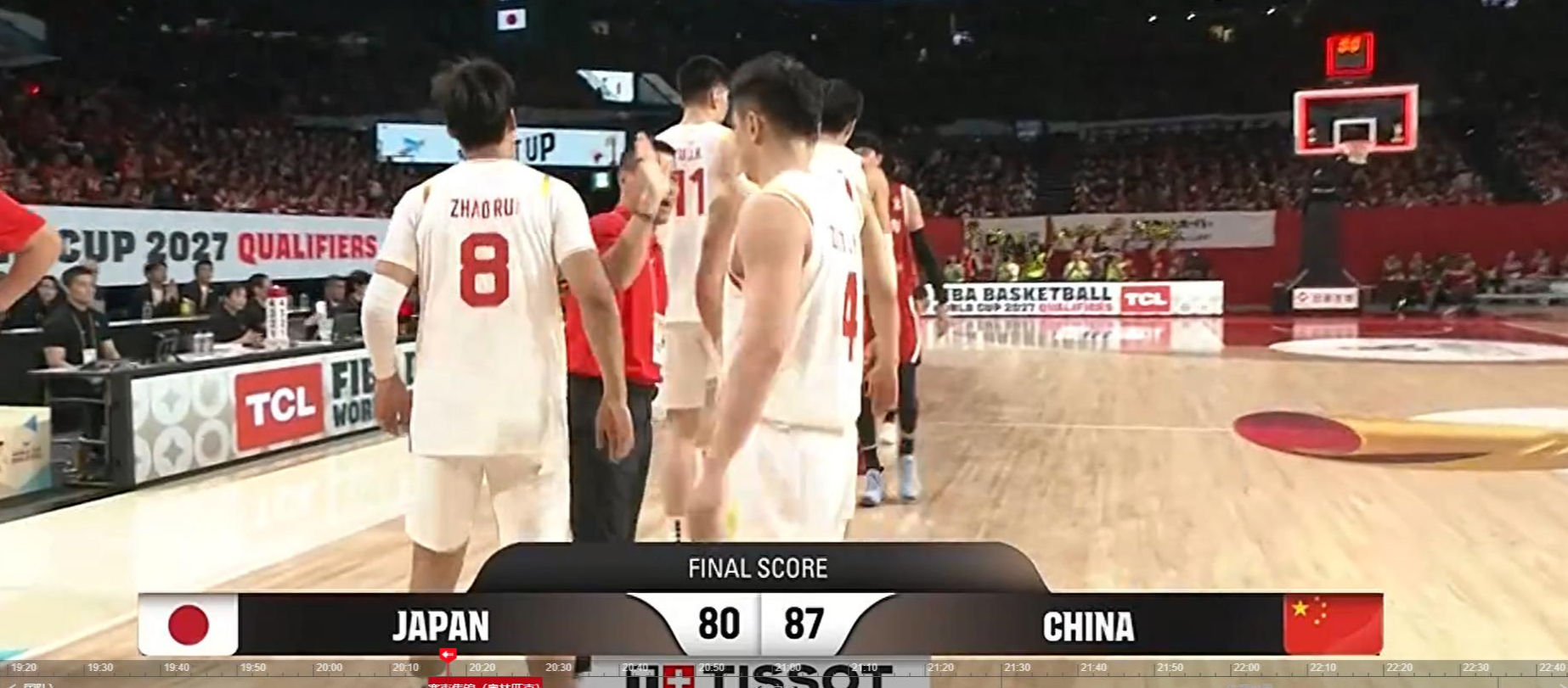 在这么困难的情况下,中国男篮小伙子顶住压力和困难,硬是在下半场打出了血气,第三节打了一个13比0,日本队在七分钟内只得2分,中国队单节赢了16分,第三结束中国队反逆2分。第四节上半段呈现拉锯战,但是下半段中国队再次拉开比分,一度建立9分优势,无论日本队如何反扑和裁判怎样帮忙,都无济于事,最终中国队在客场拿下这场艰难的比赛。