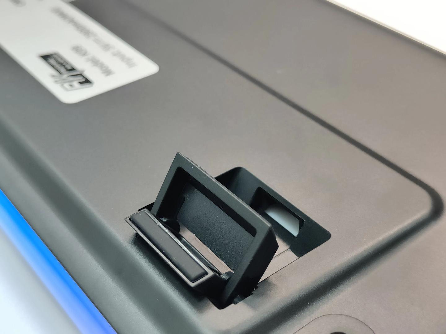 键帽是五面热升华工艺,色彩鲜亮还耐磨,用了这么久都没怎么打油。二段脚撑,能调出不同的角度,不同的用户都能轻松找到自己的舒适角度。键盘底部还有隐藏式的 2.4G 磁吸收纳仓,接收器不用的时候放进去,再也不怕丢了。