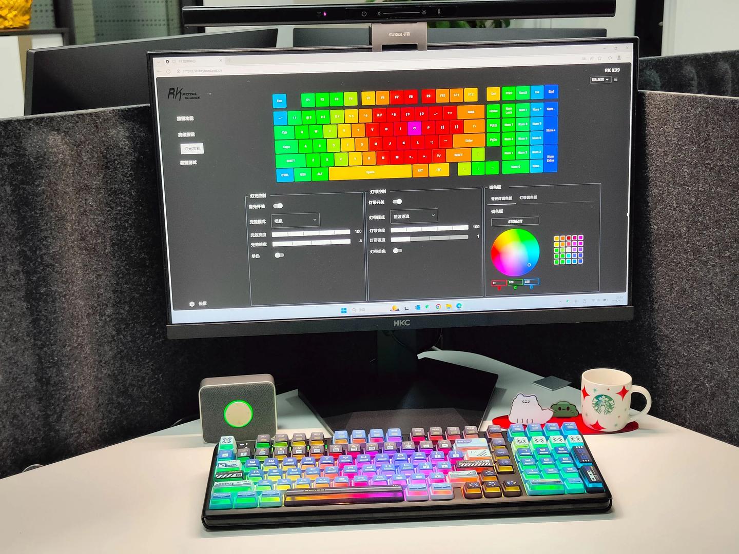 细节上看,它家自研的双端驱动也非常好用,要么直接开网页设置,要么装个简单的驱动程序,两种方式都特别方便。而且功能都非常的全面,灯效玩法比想象中丰富多了,除了之前提到的各种预设模式,还能搞图片映射,想把喜欢的图片做成灯效背景都能实现,再加上极光联动功能,灯光和屏幕画面呼应着晃,氛围感加倍!