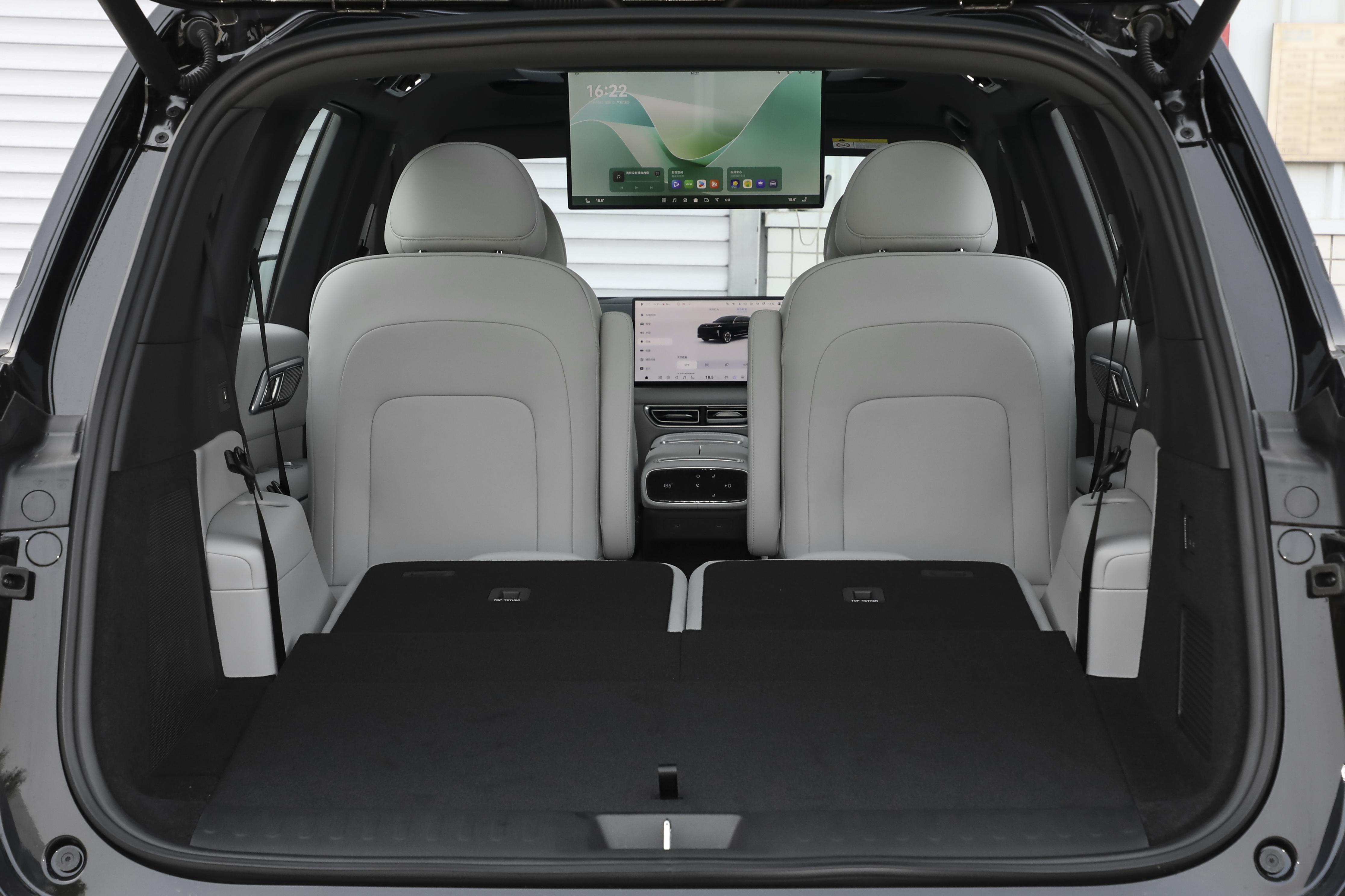 作为家庭返乡的核心需求,空间表现是深蓝S09的突出优势。2+2+2六座布局搭配3105mm超长轴距,让每一排乘客都能拥有舒展空间。第二排独立座椅支持多向电动调节,121度一键躺平的零重力模式,能让身体重量均匀分布,长途乘坐三小时也不易腰酸背痛;座椅还支持180mm横向滑动,留出宽敞通道,方便老人和孩子进出第三排。第三排绝非“应急座位”,500mm的坐垫长度与350mm的坐垫高度,配合806mm的腿部空间,即便是175cm的成年人也能从容落座,头部与腿部均有充足余量,全程无需蜷缩。座椅配备独立杯架、充电口与加热功能,细节配置不输前排,让后排乘客也能享受舒适旅途。后备箱空间更是惊喜十足,常规状态下容积达427L,满员6人时仍能轻松容纳7个20寸行李箱——父母的厚外套、孩子的玩具箱、给亲友的特产礼盒,还有过年必备的春联福字,全部妥善收纳。更值得一提的是44L下沉式隐藏空间,可存放急救包、车载工具等零碎物品,既不占用常规储物空间,又能让后备箱保持整洁。若需装载大件物品,将二三排座椅完全放平后,后备箱容积可扩展至1392L,露营装备、婴儿车等都能轻松容纳,满足节后返程的装载需求。