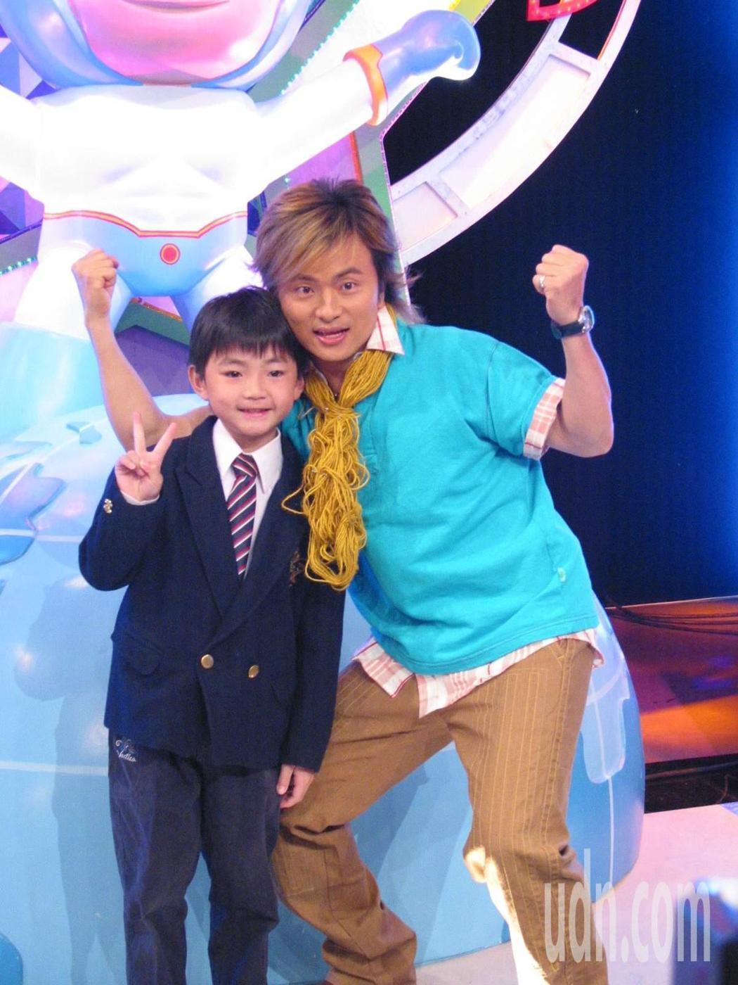 图为2004年王欣逸(左)参与电视节目与艺人唐从圣合影