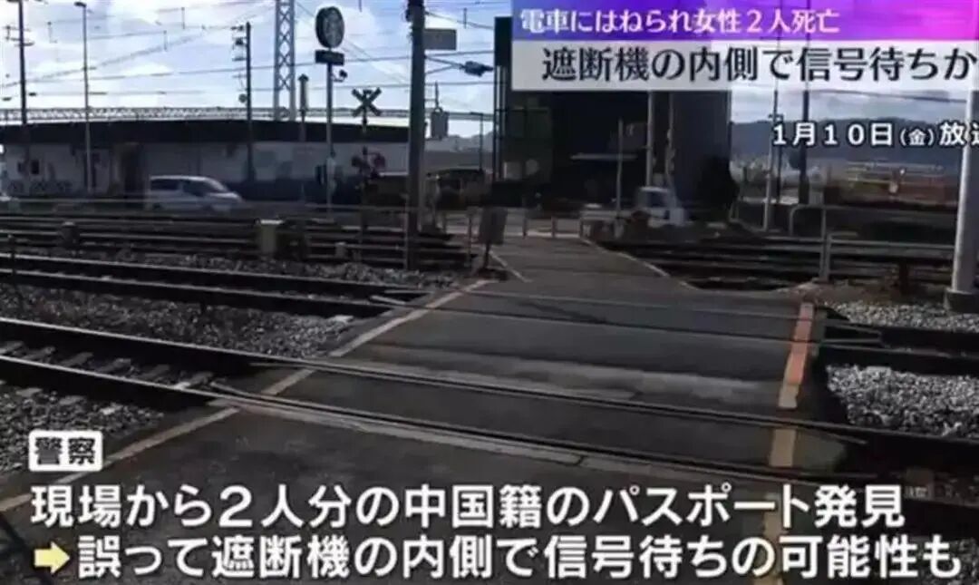 1月9日下午3点50分左右,日本兵库县两名中国女游客在铁路道口等红绿灯时遭列车撞击身亡。一男子发现两名女子重伤倒地后报警,其中一女子当场身亡,另一女子送医后身亡。