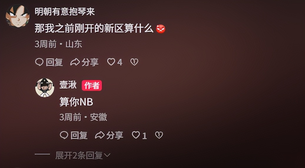 当然,也有刚入坑的玩家看完表示“不爽”,主要是因为刚进其他新区,没赶上好时候,质问“我之前刚开的新区算什么?” 隔着屏幕都感受到这位玩家的怨念。