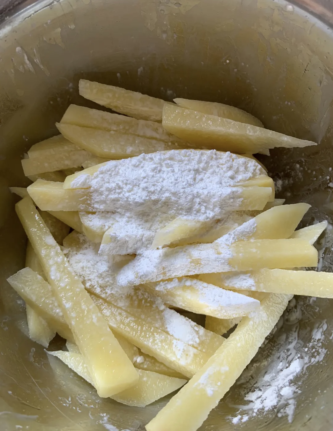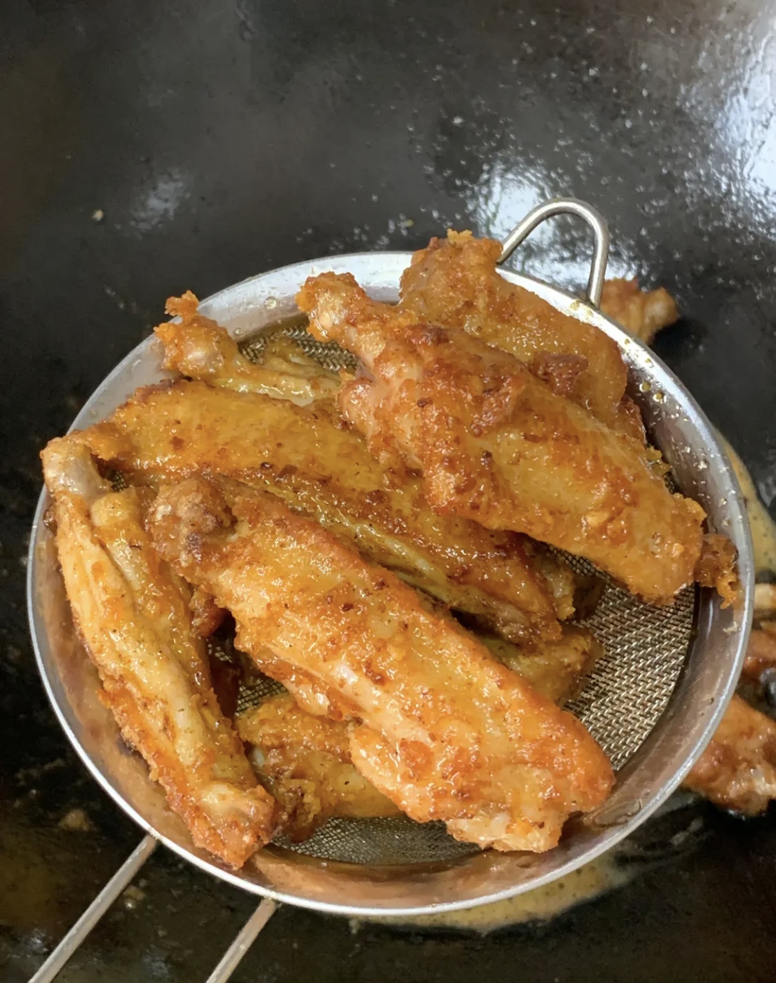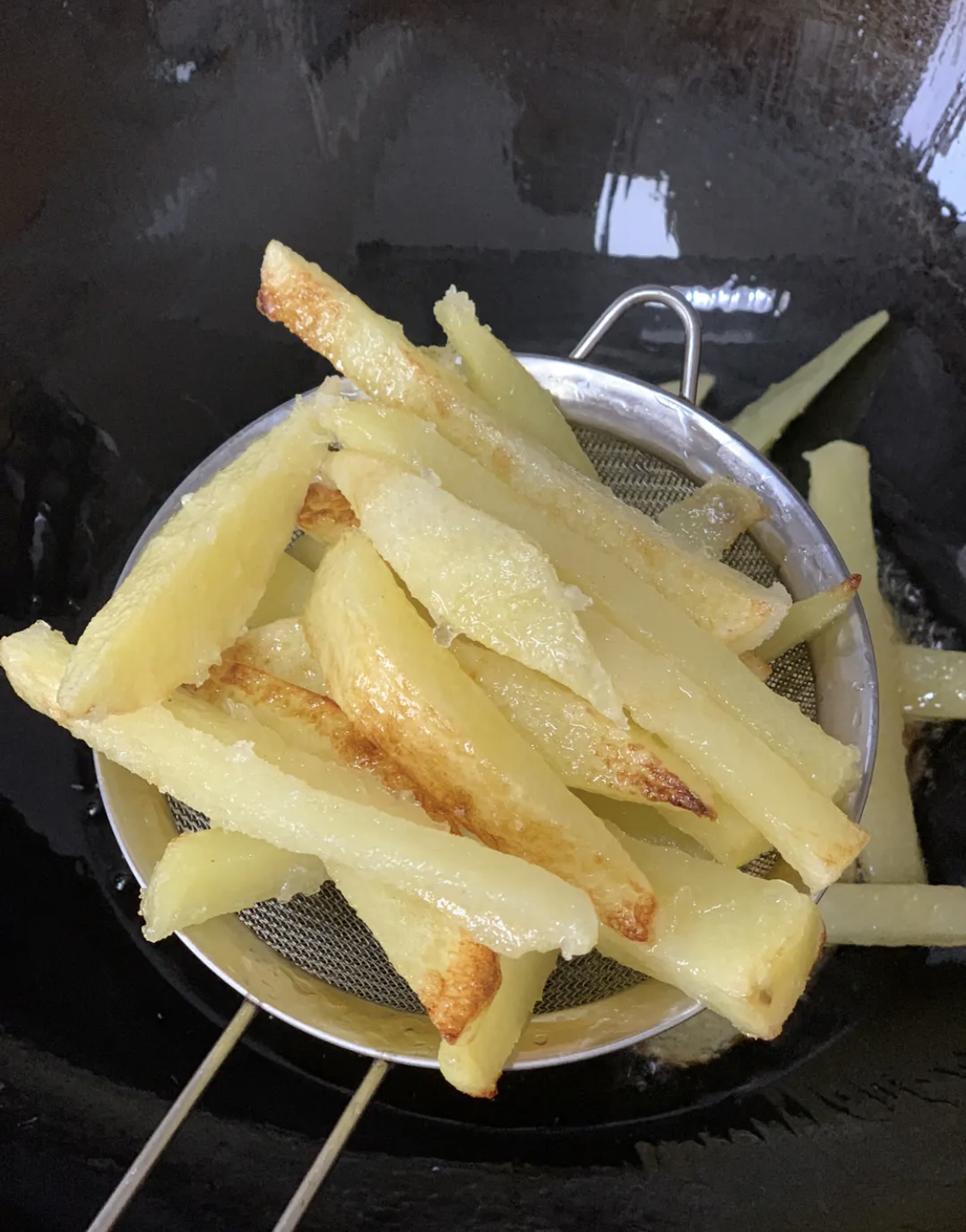 薯条,虾,鸡翅下下锅炸至金黄捞出备用