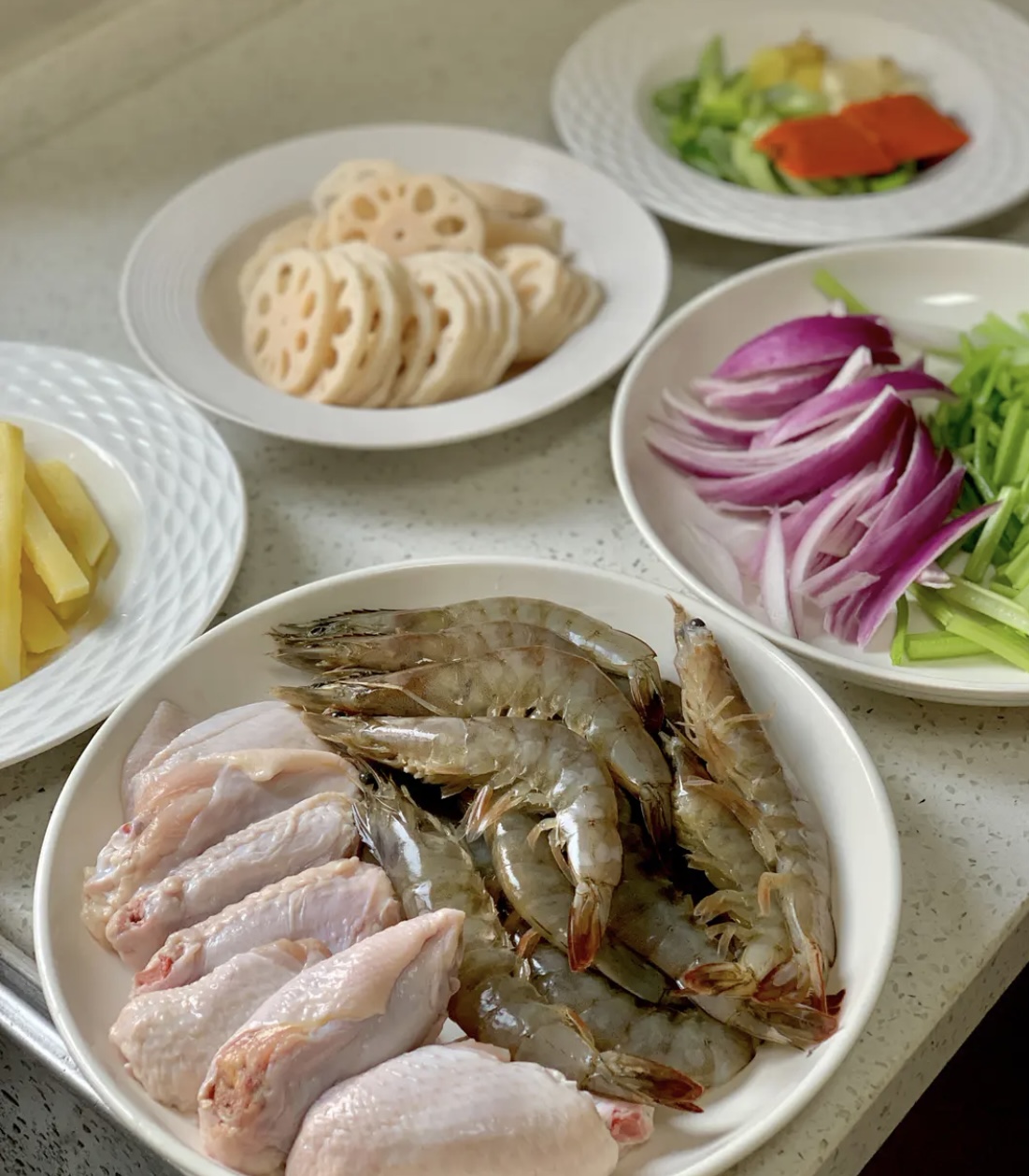 准备自己喜欢吃的菜,没有鸡翅也行,食材洗干净切好备用