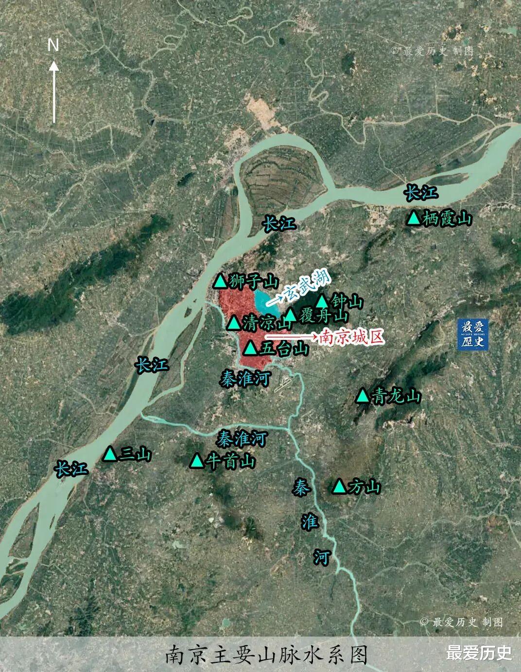 ▲南京主要山脉水系图。图源:最爱历史