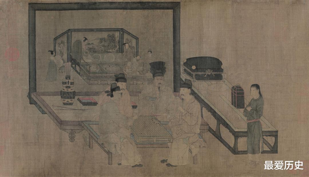 ▲[五代]周文矩《重屏会棋图》描绘李璟与其弟下棋的情景。图源:网络