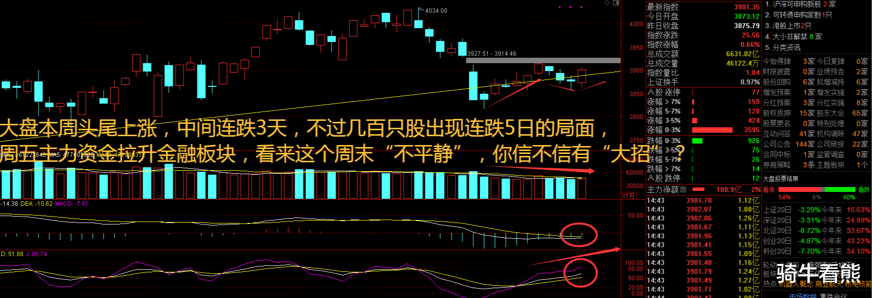 上证指数周五继续调整的走势,可谓是12月开门红之后“一直黑”,美联储降息预期下,美股继续狂欢,A股已经开始不跟随外盘波动了。市场处于震荡的过程中时,前期滞涨方向可能表现会更好,对应于本轮即为高股息及消费板块。在AI产业趋势持续发展,以及美联储12月有望降息的背景下,市场未来或许将继续震荡上行。接下来注意上证指数能否在3880点之上稳住。