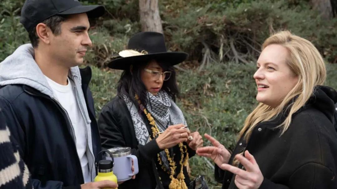 (伊丽莎白·莫斯和麦克思·明格拉在片场)